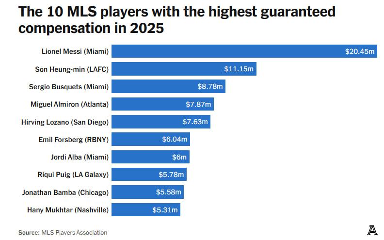 📊 کدام بازیکنان بیشترین دستمزد را در MLS می‌گیرند؟