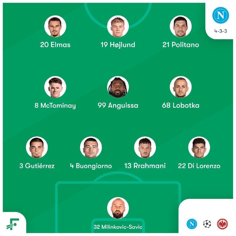 🏆 #لیگ_قهرمانان_اروپا | ترکیب ناپولی و آینتراخت فرانکفورت / ساعت: 21:15