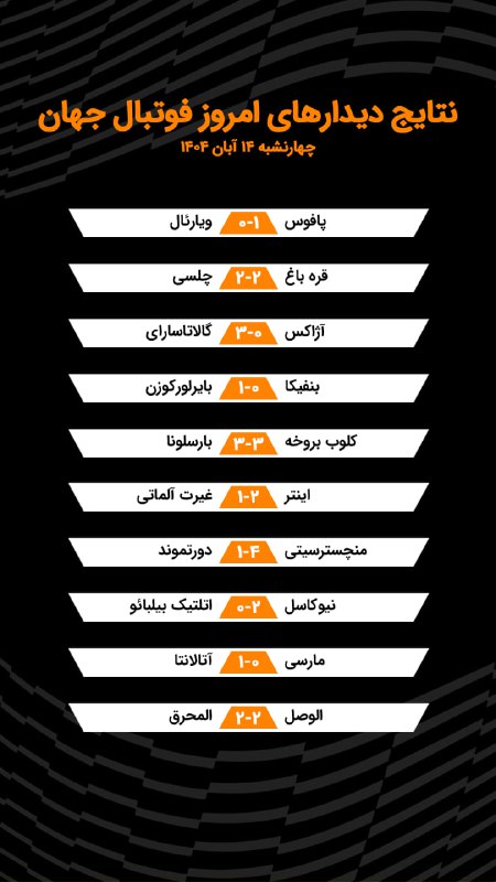 ⚽️ نتایج بازی‌های مهم امروز، 14 آبان 1404