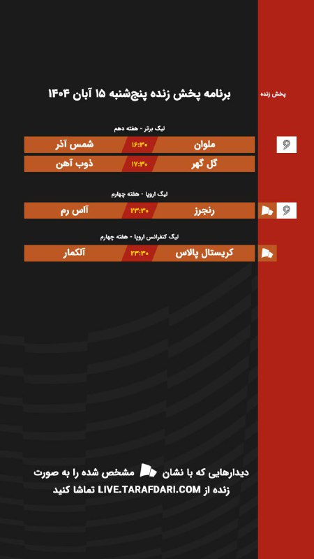 💥با پخش زنده طرفداری، هیچ دیدار حساسی رو از دست ندید!