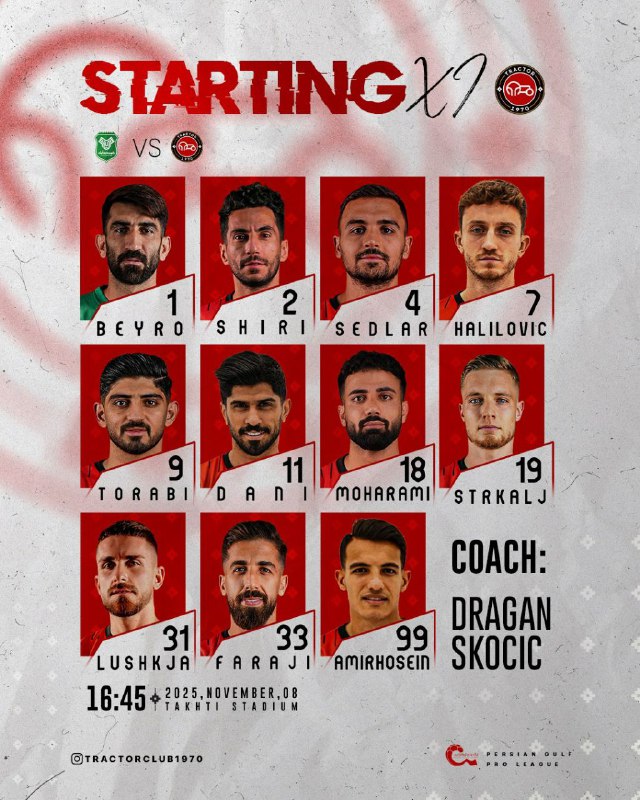 🏆#لیگ_برتر | ترکیب تراکتور مقابل خیبر / ساعت ۱۶:۴۵
