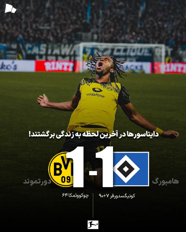 🏆 #بوندسلیگا | هامبورگ 1_1 دورتموند / شاگردان توماس فرانک فرصت نزدیک‌شدن به بایرن مونیخ را از دست دادند