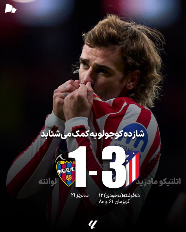 🏆 #لالیگا | اتلتیکو مادرید 3_1 لوانته / اتلتی با جبران فرم ضعیف در تعقیب رئال و بارسا