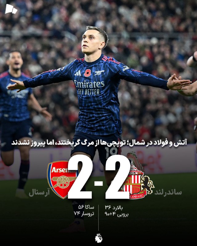 🏆#لیگ_برتر_انگلیس | ساندرلند 2_2 آرسنال / دو گل برای بقا، دو گل برای غرور؛ نبردی بیبرنده اما پرشور