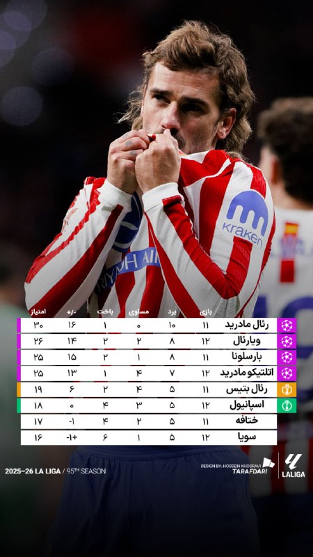 🔷 ویارئال و اتلتیکو مادرید جای خود مستحکم کردند؛ رئال مادرید فعلاً دست‌نیافتنی