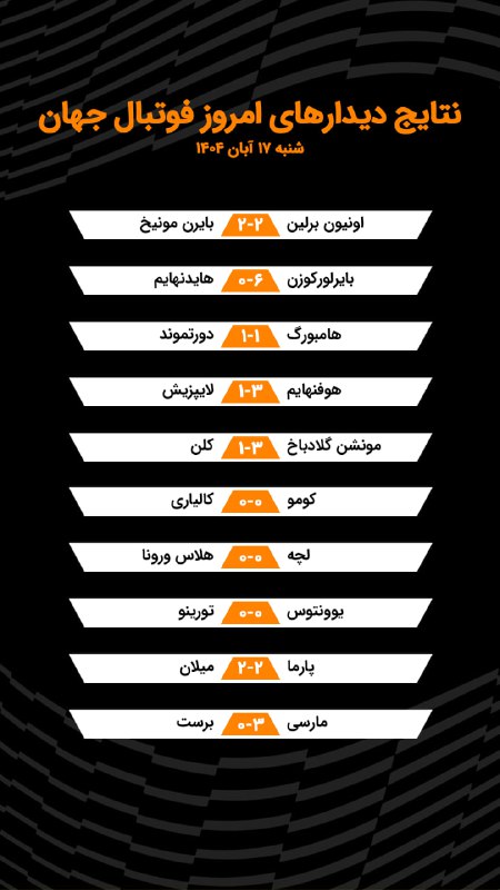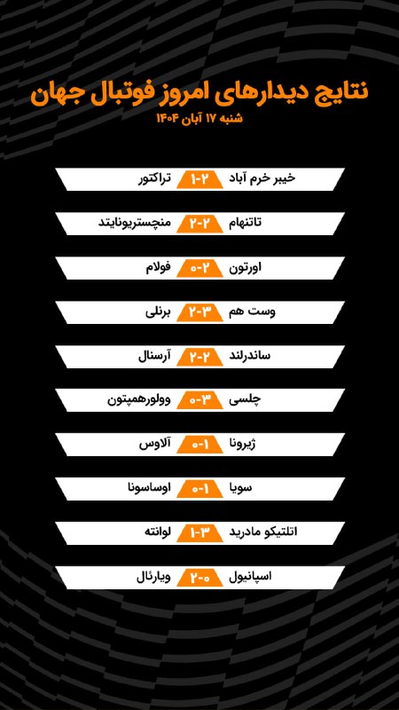 🔶 نتایج بازی‌های مهم امروز، 17 آبان 1404