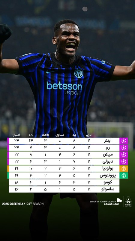 جدول سری آ ایتالیا در پایان هفته یازدهم