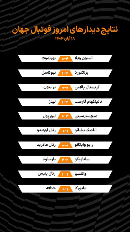 ⚽️⚽️نتایج دیدارهای امشب فوتبال جهان، ۱۸ آبان ۱۴۰۴