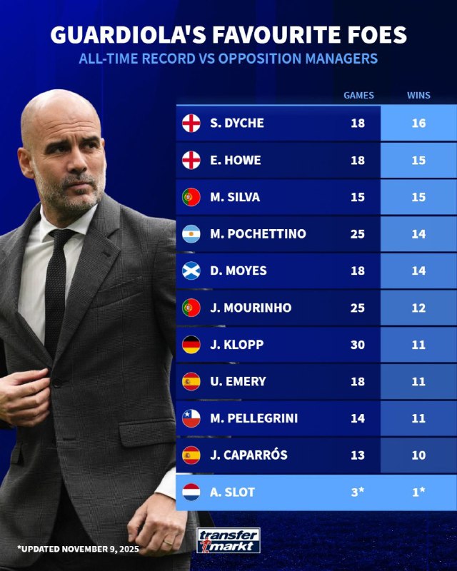 مقایسه عملکرد پپ در برابر دیگر مربیان 🏆به مناسبت هزارمین بازی گواردیولا