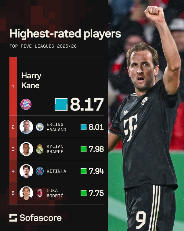 ترینهای آماری فصل 📊📢بهترین بازیکنان پنج لیگ معتبر اروپایی از نگاه سوفااسکور