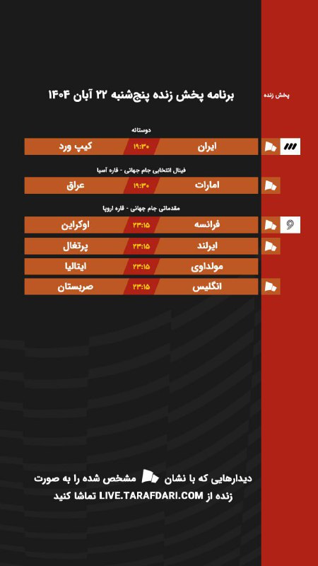 📌 برنامه پخش زنده ‌پنج‌شنبه ۲۲ آبان ۱۴۰۴
