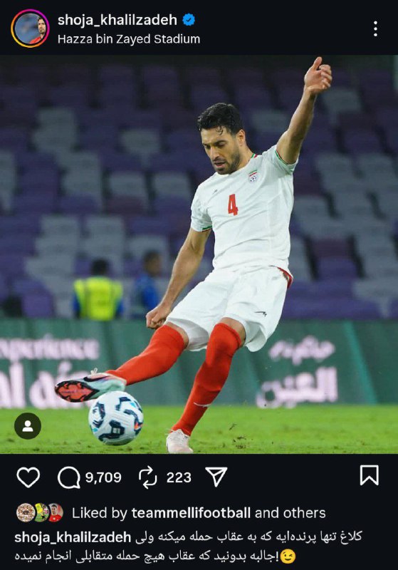 👀هتتریک شجاع خلیل زاده در تغییر کپشن و واکنش به انتقادات؛ «این کلاغ است که به عقاب حمله میکند!»