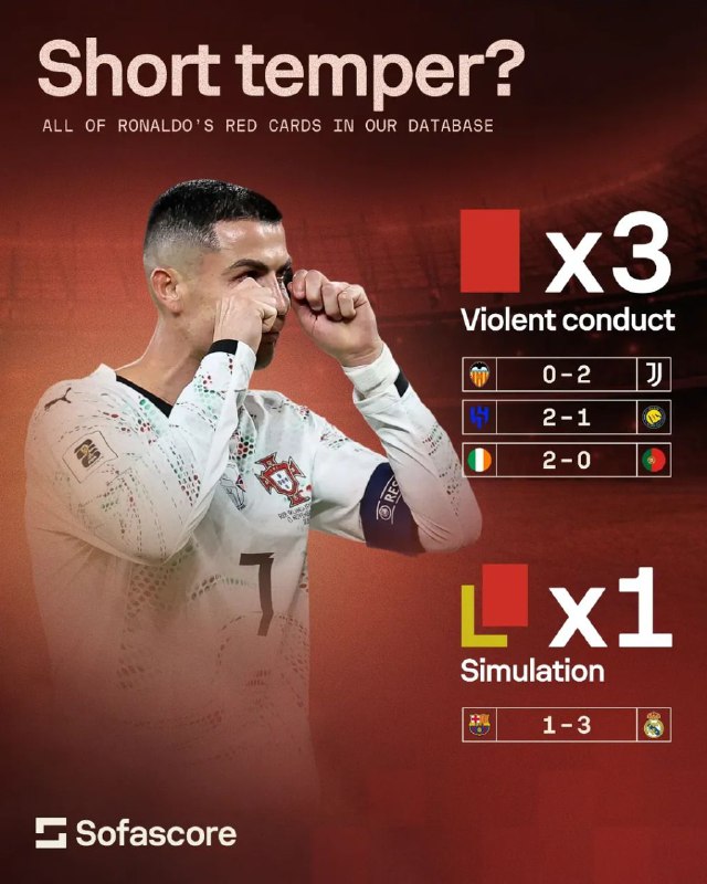 ستارهای که زود از کوره در میرود 🔴❗️نگاهی آماری به اخراجهای کریستیانو رونالدو