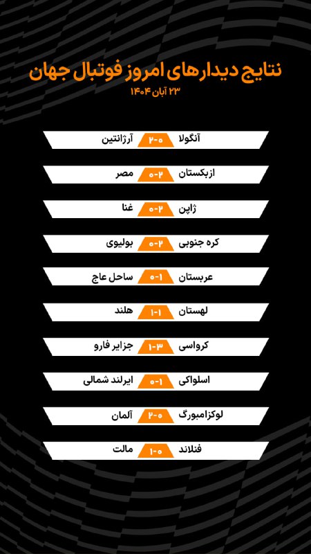 🔶 نتایج بازی‌های مهم امروز، 23 آبان 1404