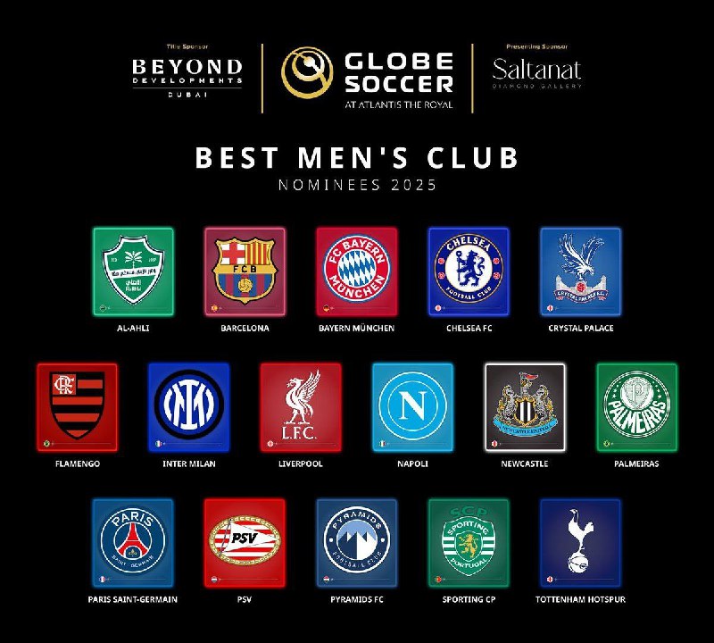 ⭐️ رسمی؛ معرفی نامزدهای جایزه بهترین باشگاه جهان در جوایز گلوب ساکر