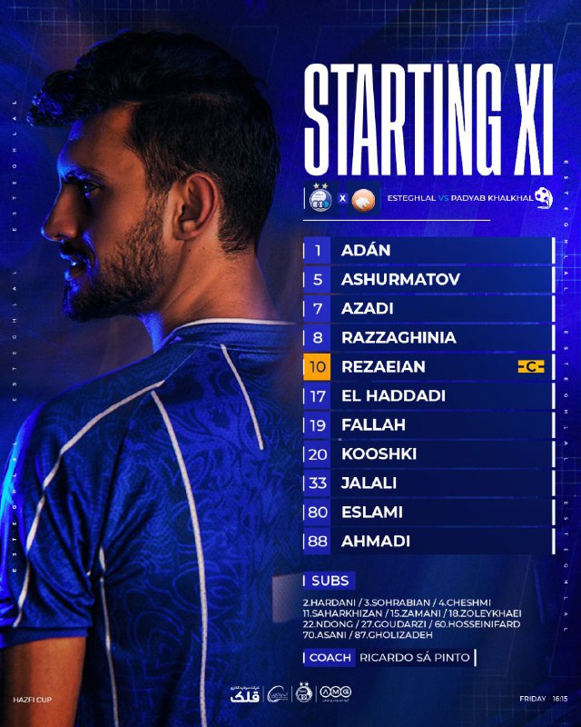 رامین برگشت، هنوز خبری از آقاسی نیست؛ 🏆 جام حذفی | ترکیب استقلال مقابل پادیاب خلخال / ساعت ۱۶:۱۵