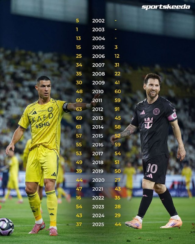 📊آمار گل‌های مسی و رونالدو از ابتدا تا به امروز