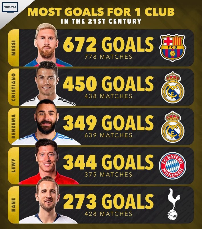 🥇 بهترین گلزنان تاریخ برای یک باشگاه در قرن ۲۱!
