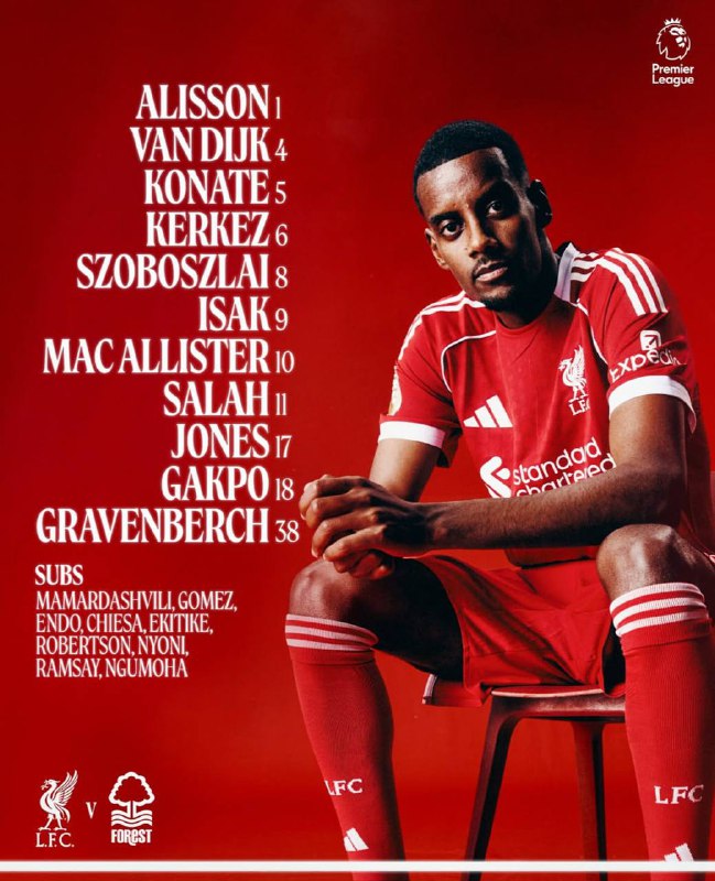 🏆 #لیگ_برتر_انگلیس | ترکیب لیورپول مقابل ناتینگهام فارست / ساعت ۱۸:۳۰
