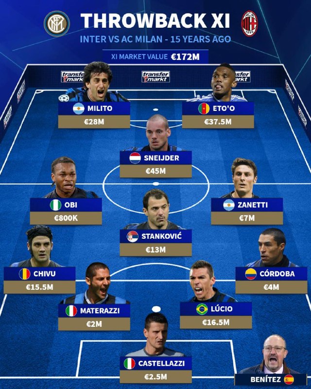 🔴🔵ترکیب میلان و اینتر در دربی دلامادونینای ۱۵ سال پیش