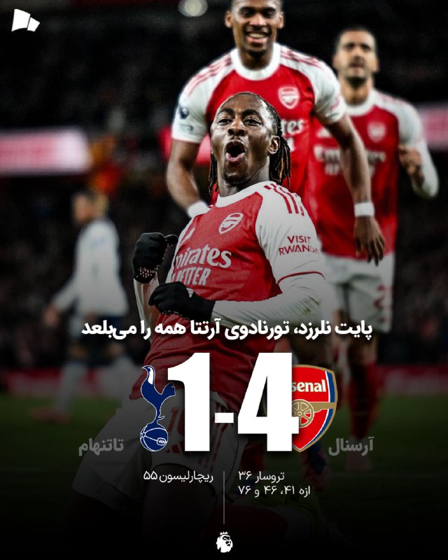 📊 اولین هتتریک در دربی شمال لندن پس از 47 سال، به نام ابرچی ازه