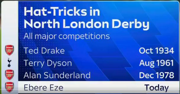 تنها 4 بازیکن موفق به هتتریک در دربی شمال لندن شدهاند که یکی از آنها ابرچی ازه است