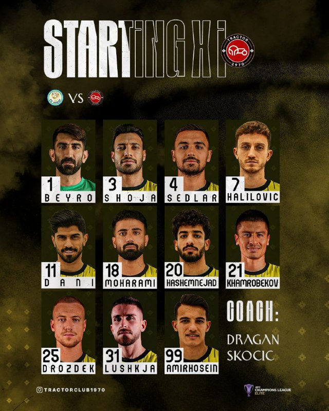 🏆 #لیگ_نخبگان_آسیا | ترکیب تراکتور مقابل نسف قارشی / ساعت ۱۷:۱۵