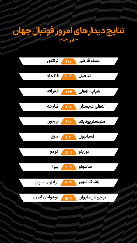 نتایج دیدارهای مهم امروز؛ 🔶از نتایج ضعیف نمایندگان عربستان در آسیا تا شکست خانگی شیاطین سرخ