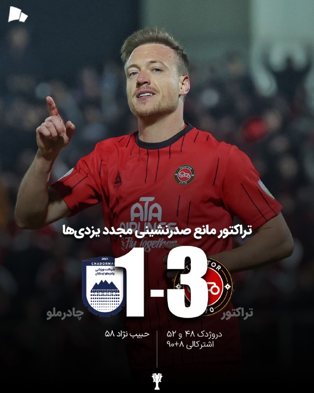 🏆 #لیگ_برتر | تراکتور 3_1 چادرملو / تراکتور مانع صدرنشینی مجدد یزدیها