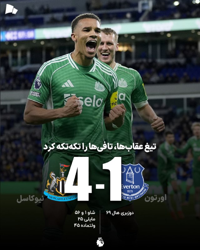 🏆 #لیگ_برتر_انگلیس | اورتون 1_4 نیوکاسل / زاغ‌های تیزپرواز، آسمان آبی مرسی‌ساید را تصاحب کردند
