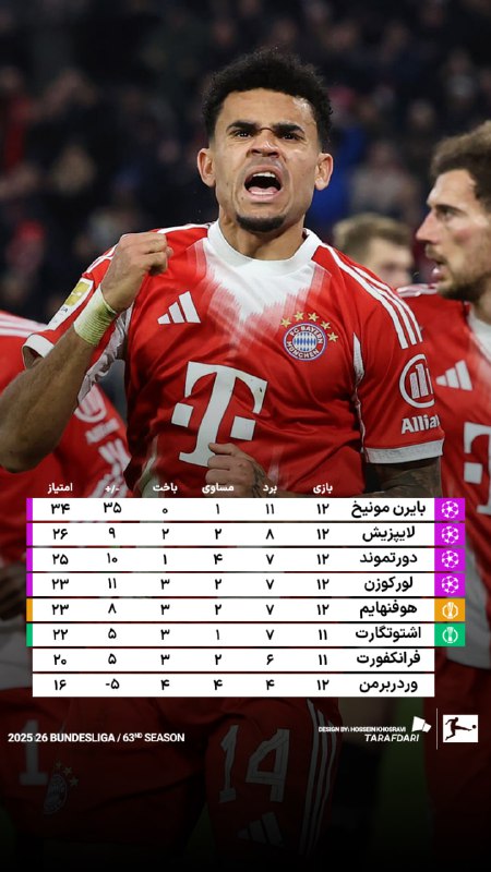 📊 جدول بوندسلیگا؛ بایران به فکر فاصله انداختن با رقبا