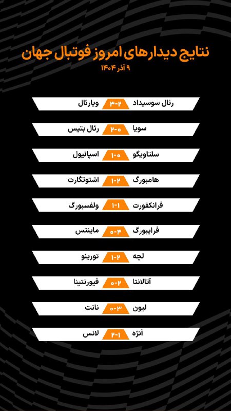 نتایج دیدارهای مهم امروز؛ 🔶از پیروزی استقلال در ایران تا برد اینتر در ایتالیا و همچنین نتایج لیگ برتر فوتبال انگلیس