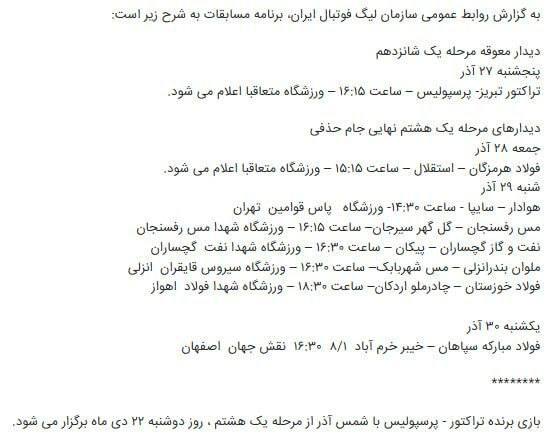 سرخهای تهران و تبریز، یک ماه عقبتر از بقیه؛ 🗓️⚽️ برنامه مرحله یکهشتم نهایی و دیدار معوقه پرسپولیس و تراکتور مشخص شد