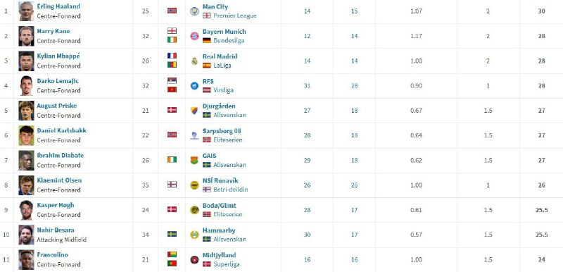🎖جدول مدعیان کفش طلای اروپا 2026؛ ارلینگ هالند با دو رقیب بزرگ می‌جنگد