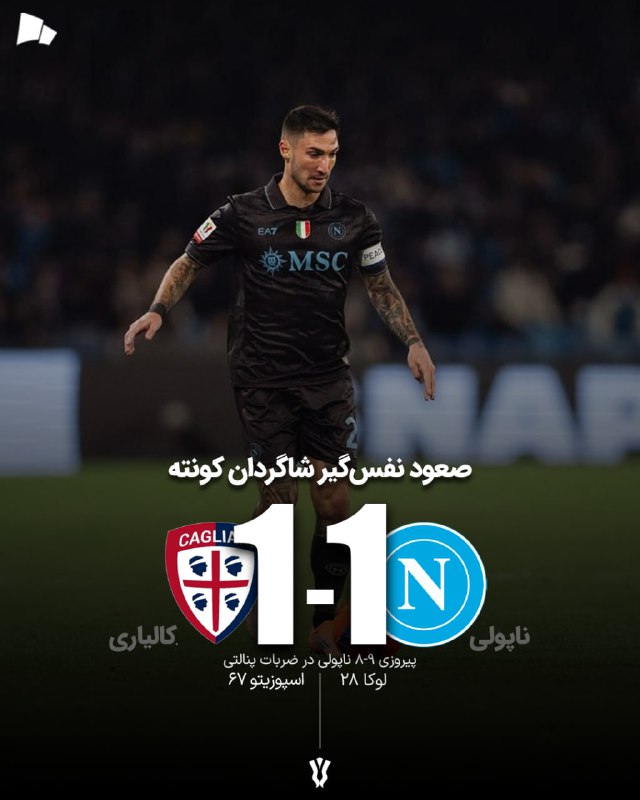 🏆 کوپا ایتالیا | ناپولی (9) 1_1 (8) کالیاری / صعود نفسگیر شاگردان کونته
