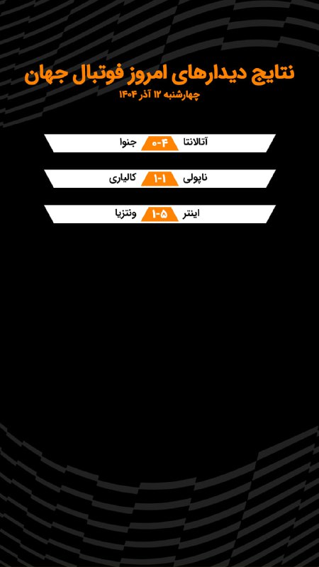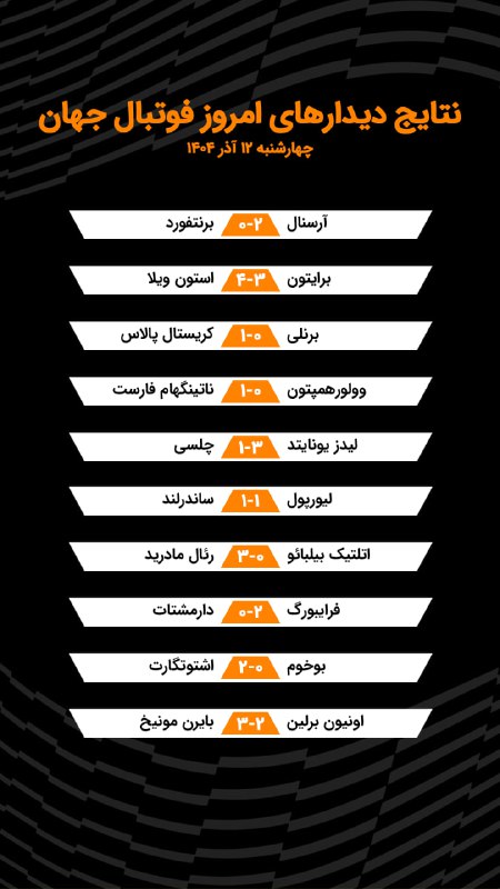 🔶 نتایج بازی‌های مهم امروز، 12 آذر 1404