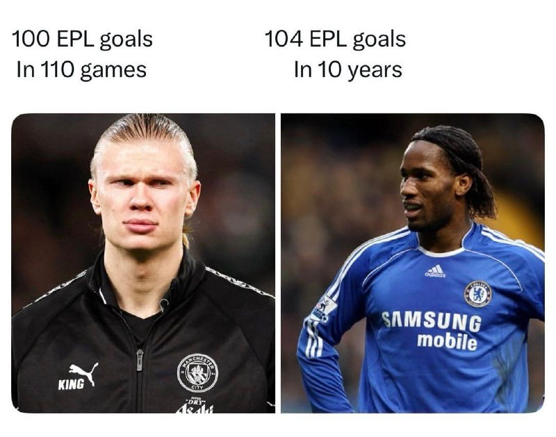👀 ارلینگ هالند = ۱۰۰ گل زده در لیگ برتر در ۱۱۰ بازی، دروگبا= ۱۰۰ گل زده در لیگ برتر در ۱۰ سال!