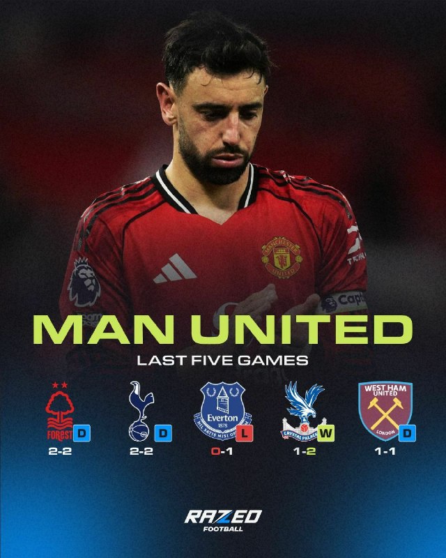 📊 نتایج 5 دیدار اخیر منچستریونایتد؛ تنها یک پیروزی