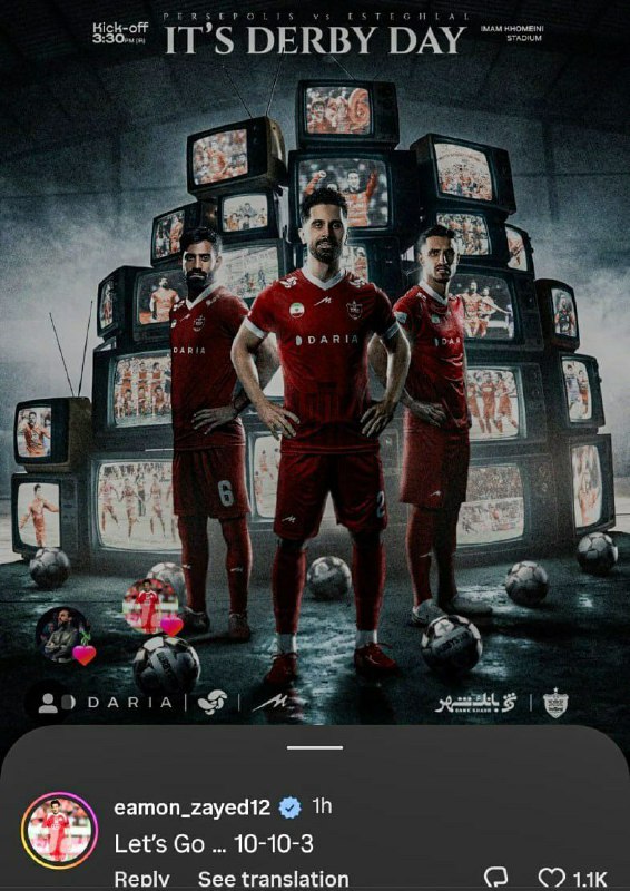 📱کامنت ایمون زاید زیر آخرین پست باشگاه پرسپولیس