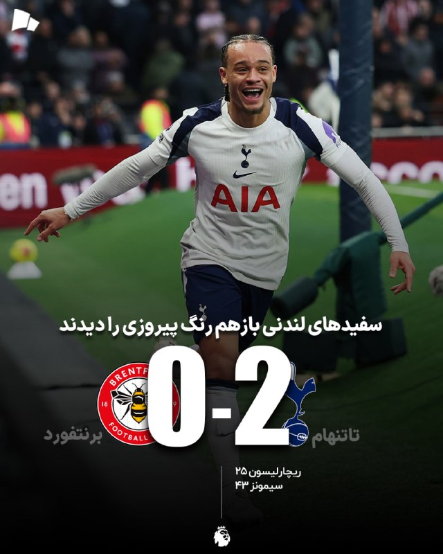 🏆 #لیگ_برتر_انگلیس | تاتنهام 2_0 برنتفورد / تازه هشتم شدند!