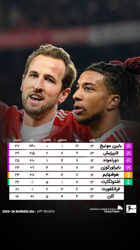 📊 وضعیت جدول بوندسلیگا؛ بایرن مونیخ دست نیافتنی، لایپزیش همچنان در تعقیب