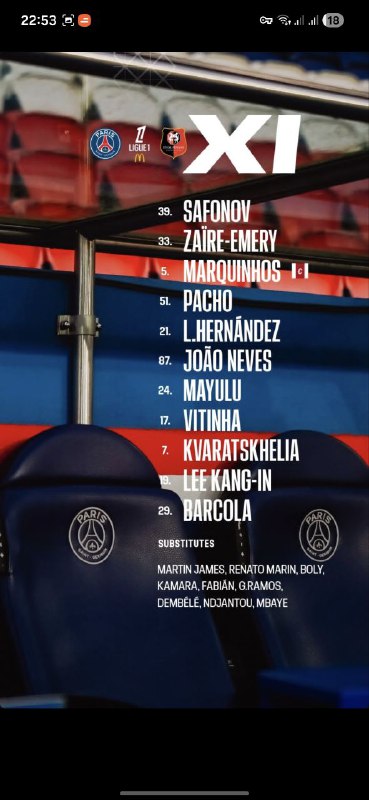 🏆 #لیگ1 | ترکیب پاری سن ژرمن مقابل رن / ساعت ۲۳:۳۵