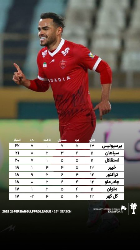 🔶#جدول_لیگ_برترایران؛ اورونوف و اوسمار شرط کافی و لازم پرسپولیس برای صدرنشینی