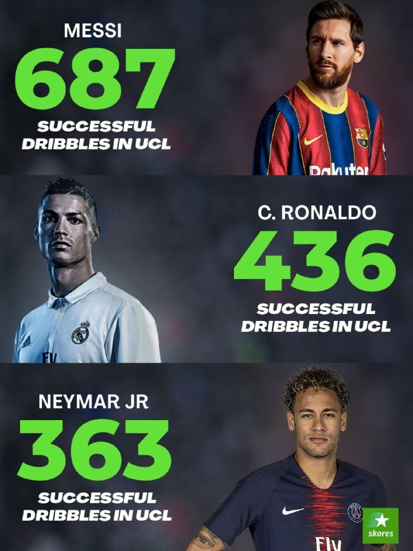 💫🐐بازیکنانی با آمار بیشترین دریبل در لیگ قهرمانان اروپا