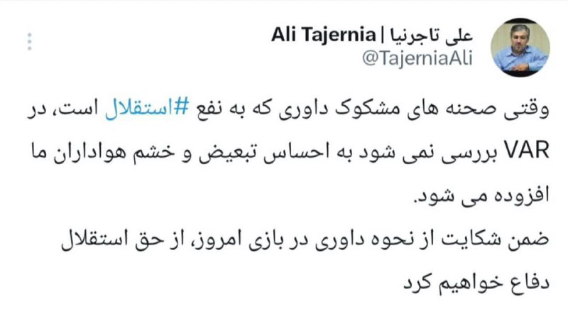 🔵 رئیس هیئت مدیره استقلال: VAR به احساس تبعیض و خشم در هواداران ما افزوده است