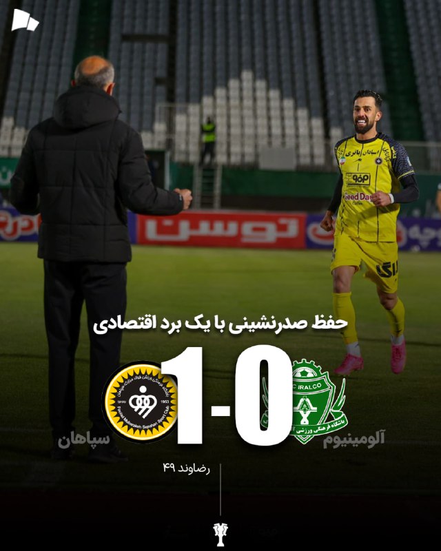 🏆 #لیگ_برتر | آلومینیوم اراک 0_1 سپاهان / زردها دودستی صدر را چسبیده‌اند