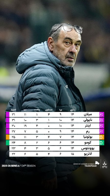 📊 جدول سری آ؛ شاگردان ساری 9 نفره بردند و به رتبه هشتم رسیدند