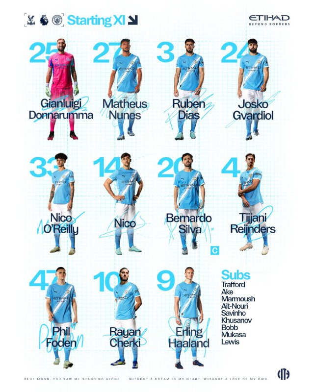 🏆 #لیگ_برتر_انگلیس |‌ ترکیب منچسترسیتی برابر کریستال پالاس / ساعت ۱۷:۳۰