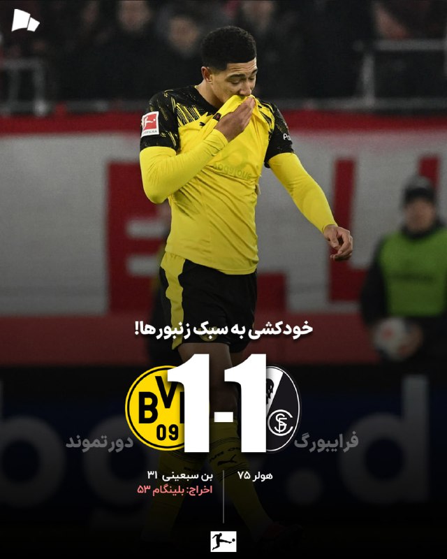فرصت رسیدن به رده دوم از دست رفت 🏆 #بوندسلیگا | فرایبورگ 1_1 دورتموند / شاگردان کواچ پس از ده نفره شدن کاملاً از هم پاشیدند و برد را با تساوی عوض کردند