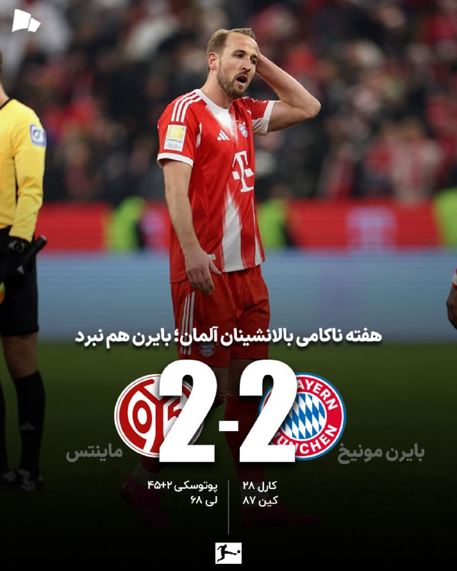 اولین توقف خانگی فصل باواریاییها در آلیانتس آرنا 🏆 #بوندسلیگا | بایرن مونیخ 2_2 ماینتس / چیزی نمانده بود که «صفر-پنج»ها، آخرین صفر جدول بوندسلیگا را خط بزنند